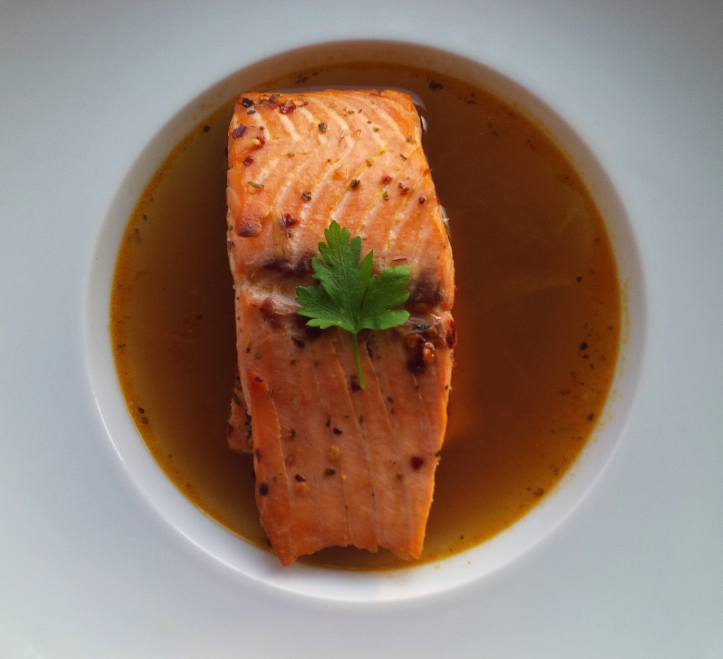 Salmon, Chicken stock, Pepper soup mix, Fish seasoning, Crushed chilies, Rosemary and Parsley. lets do this!