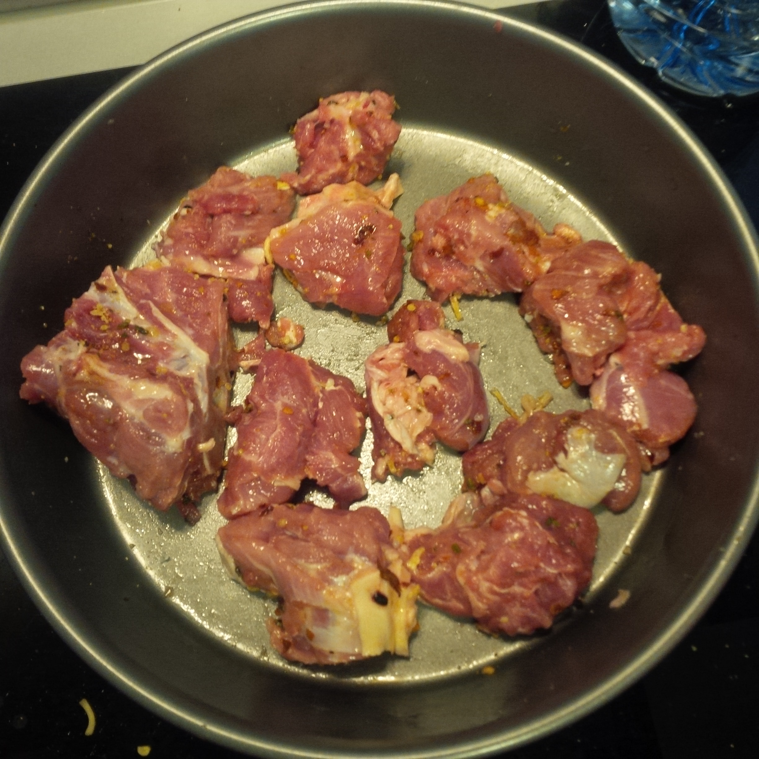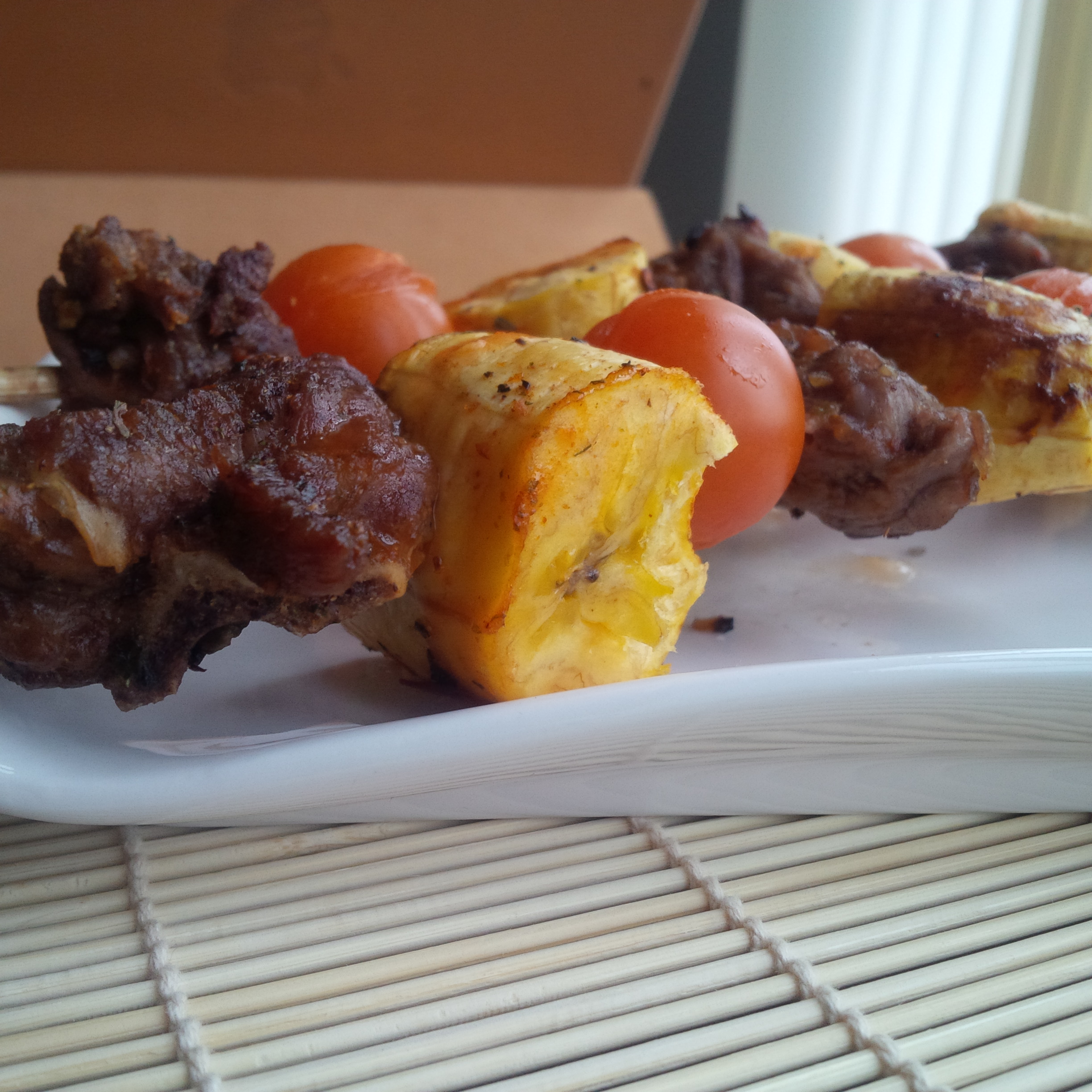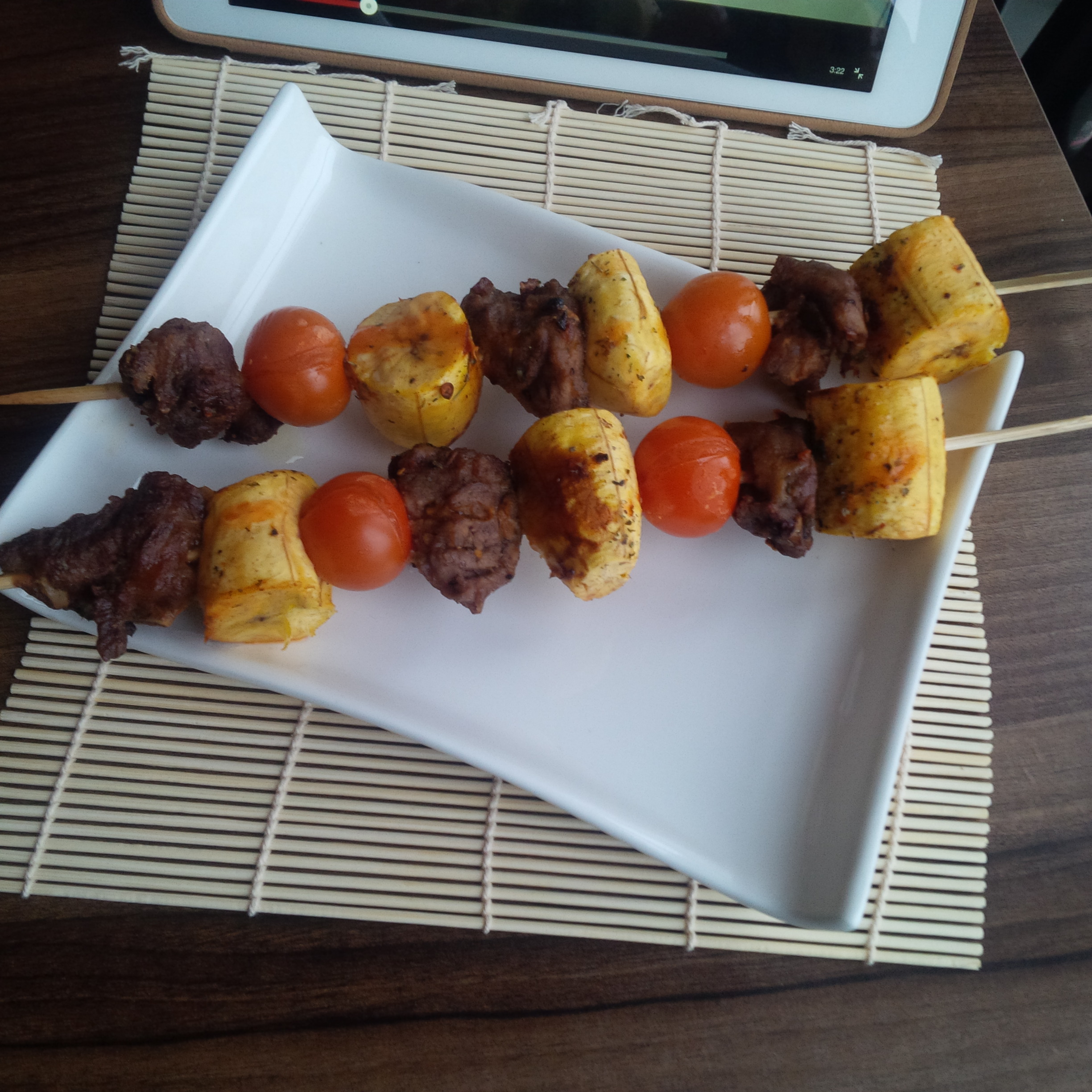 Simple chops made from plantains, lamb, cherry tomatoes, with maggi, mixed herb, salt, lamb seasoning, and perri perri seasoning.
