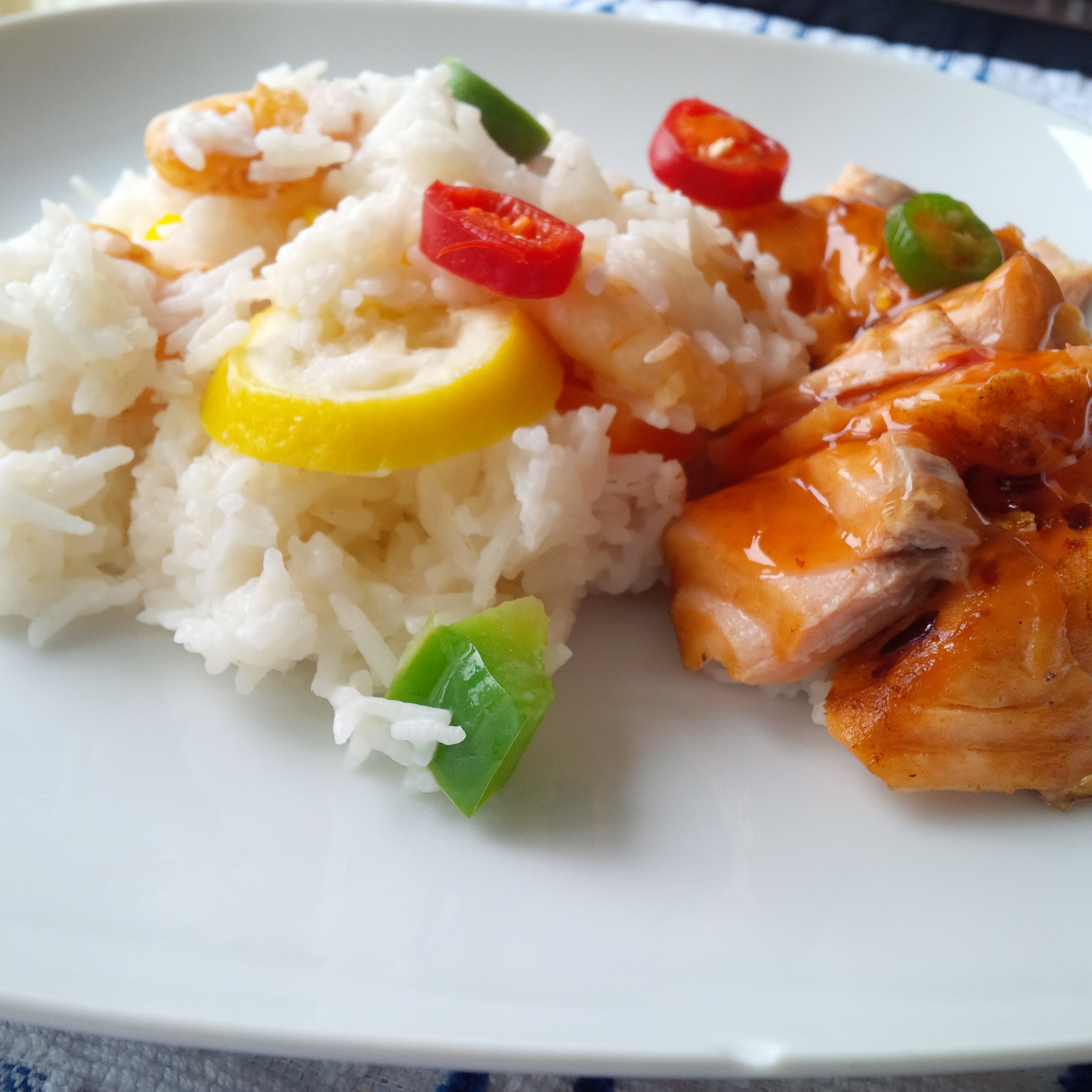 Season the salmon with maggi, salt, and anything nice, drizzle with one table spoon of olive oil then grill in a preheated oven at 200’c for 32 mins.