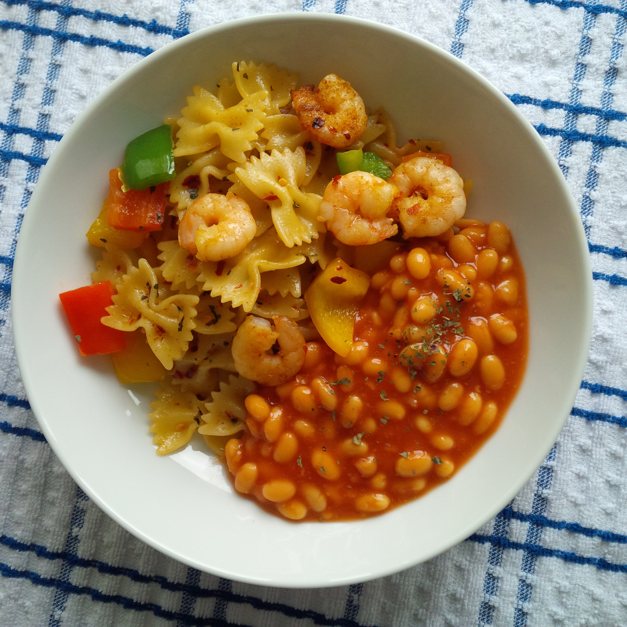 Serve the pasta with the bake beans and Enjoy!!. Salam Alaikum. 🙂