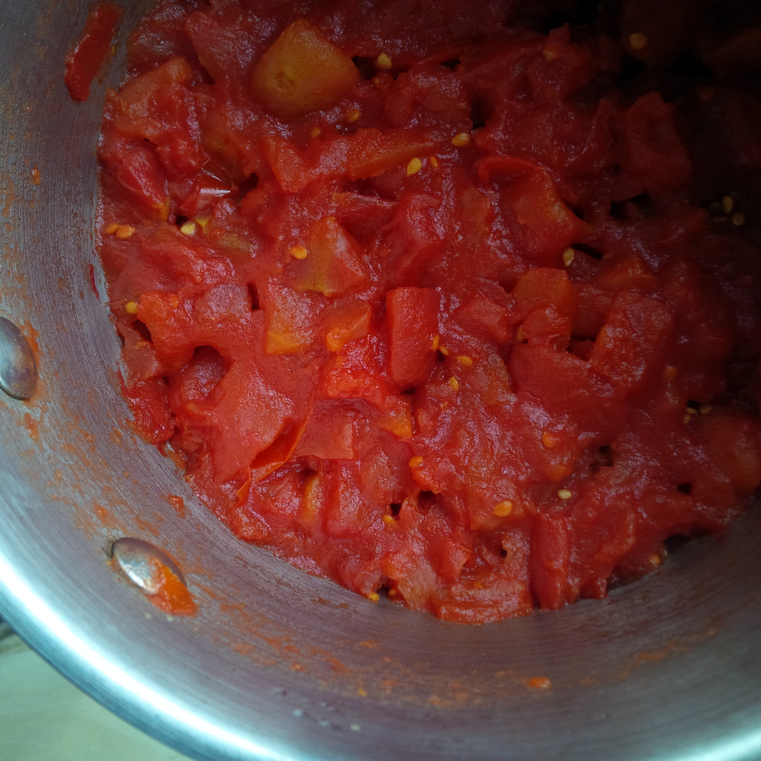Cook the chopped tomatoes for 15 mins, then add some scotch bonnets based on preference, onions and 2 table spoon of olive oil. Add some seasoning, salt to taste and cook for additional 20 minutes.