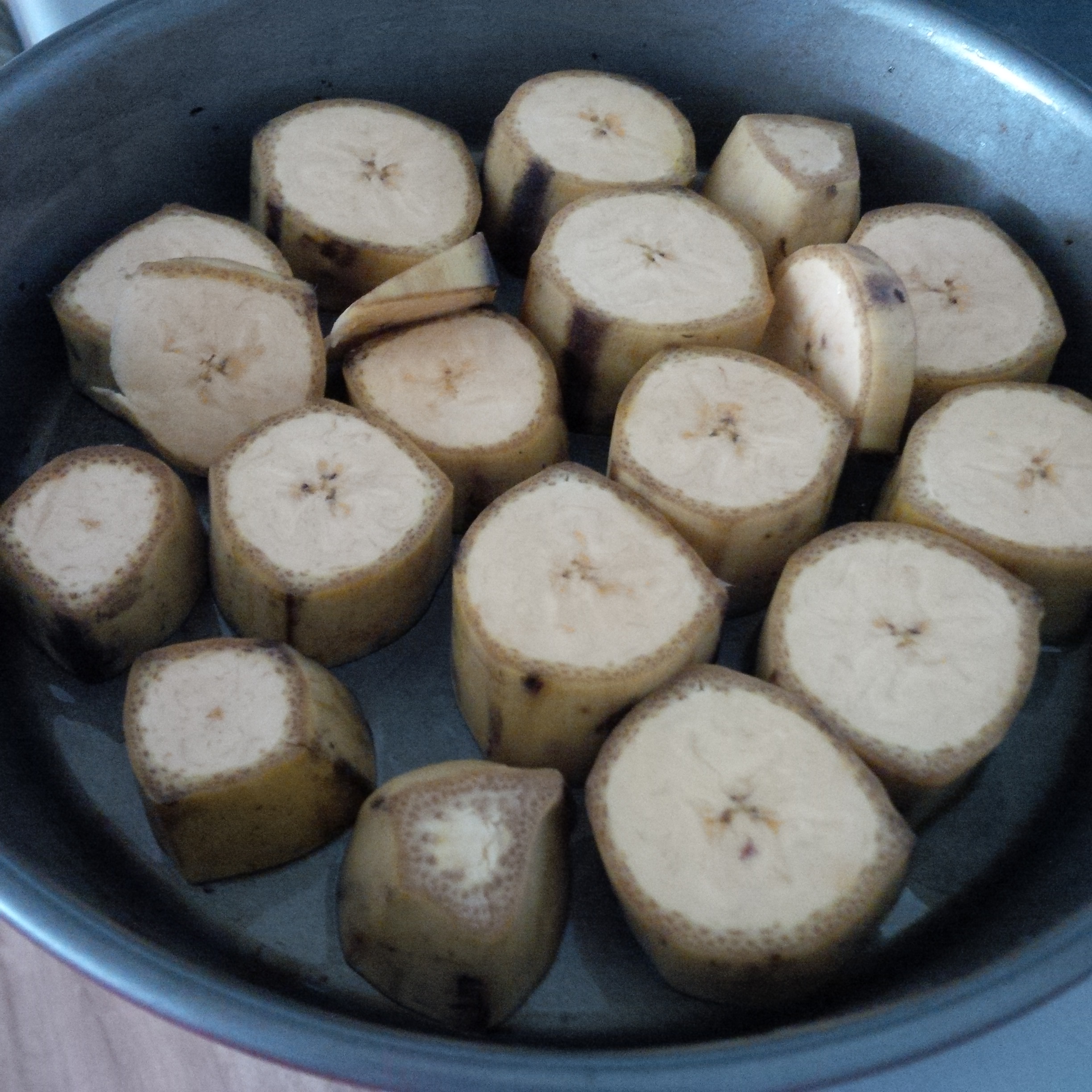 Slice the plantains with the skin on into an oven tray/pan, add 1 or 2 table of olive oil, then grill in a preheated oven at 225 “C for 20 – 25 mins, while checking it at intervals to prevent it from burning.